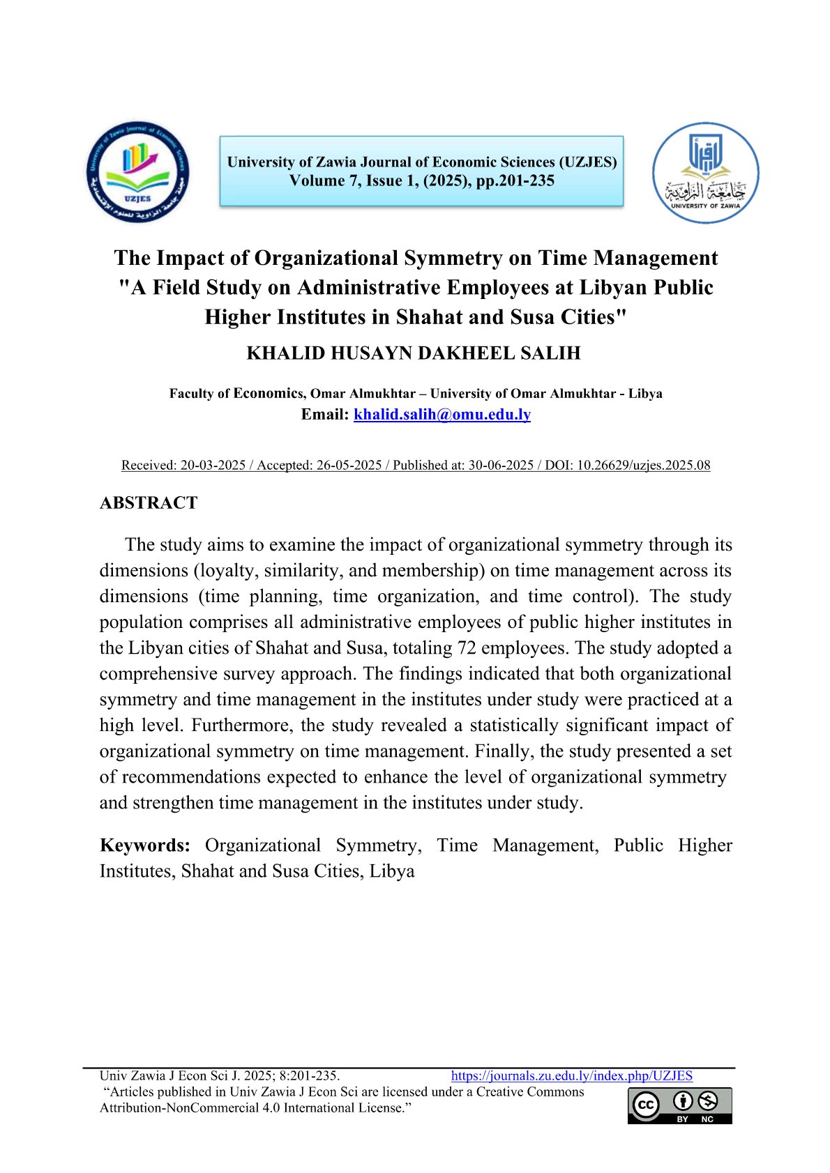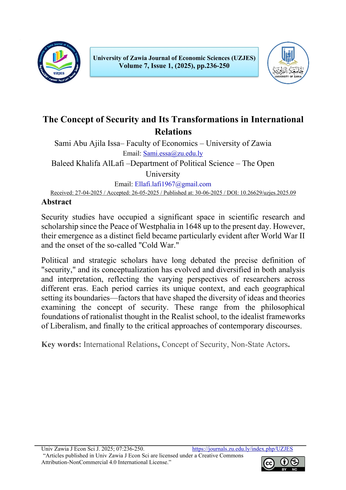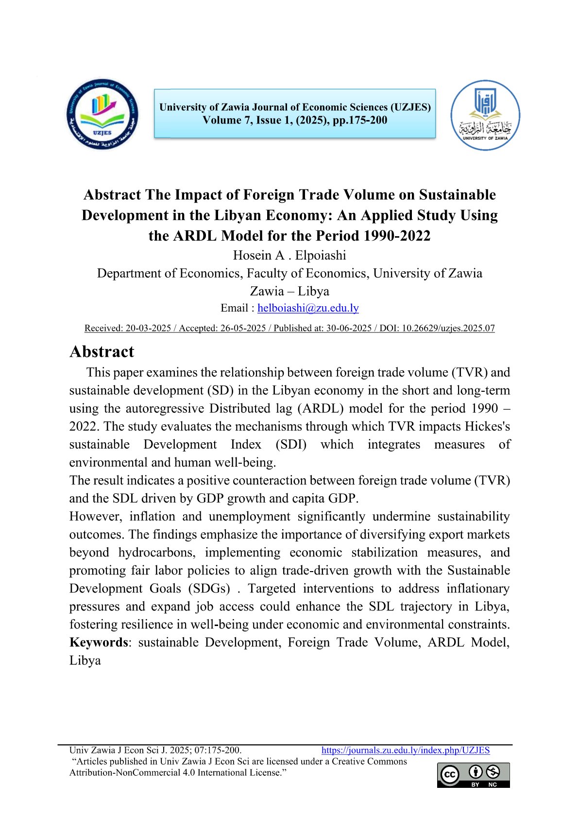 University of Zawia Journal of Economic Sciences is a refereed scientific journal issued every six months and is concerned with research in fields related to economic, administrative and financial sciences in Arabic and English, in addition to presenting summaries of books and prestigious scientific theses specialized in this field, presenting reports issued by the responsible authorities and a summary of research published in scientific conferences and seminars