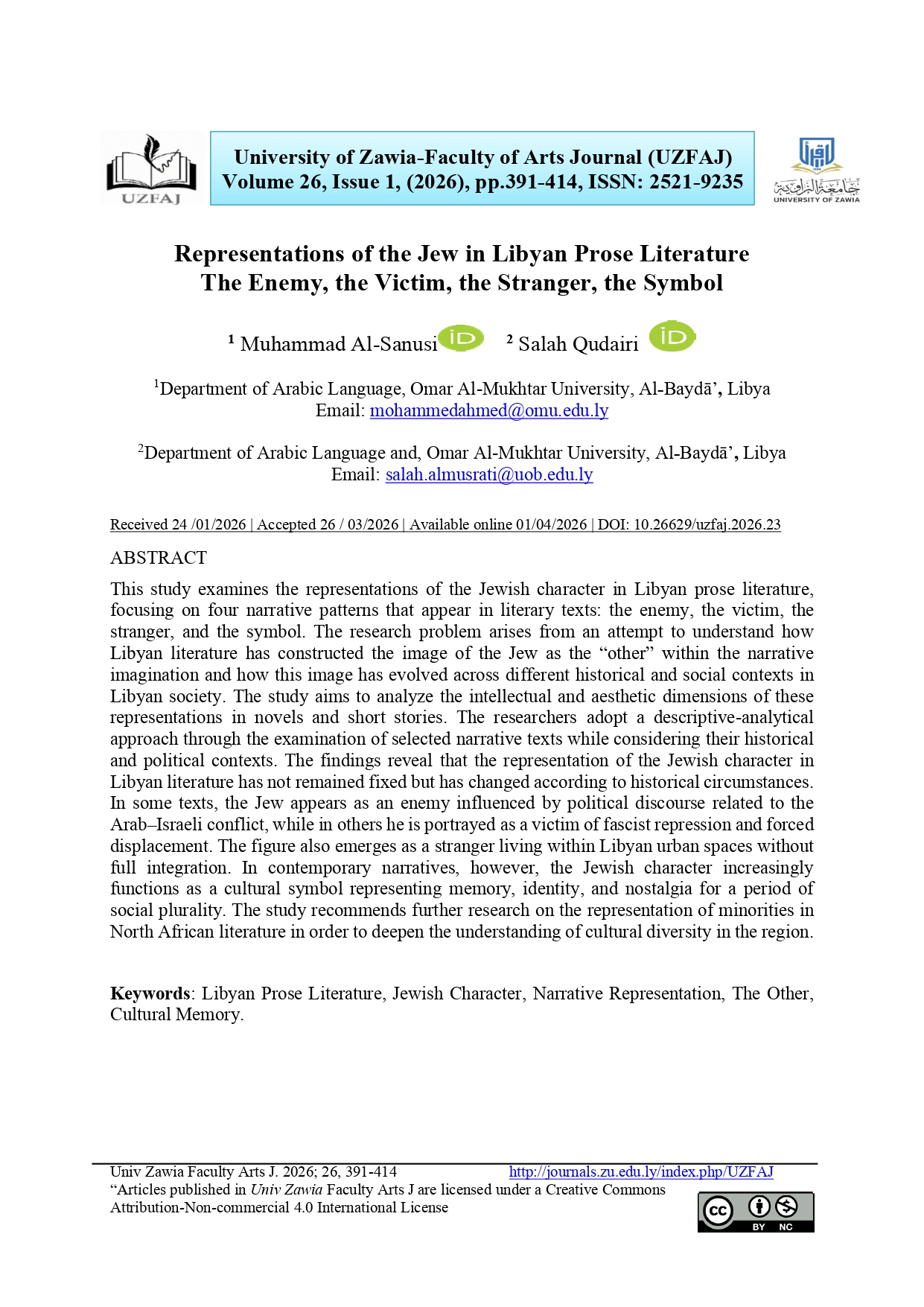 جامعة الزاوية- مجلة كلية الآداب ( UZFAJ )