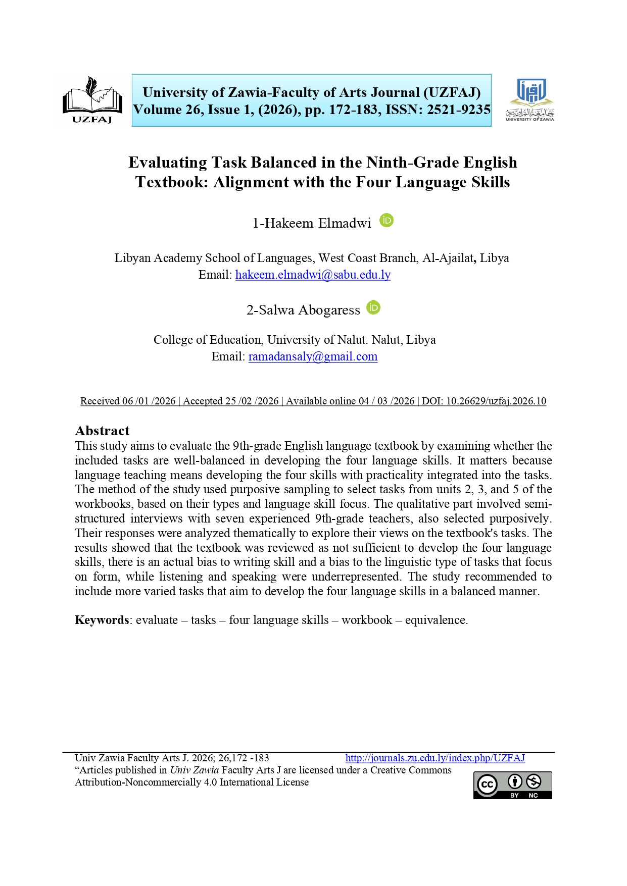 مجلد 26 عدد 1 (2026): المجلد السادس والعشرون - العدد الاول - 2026