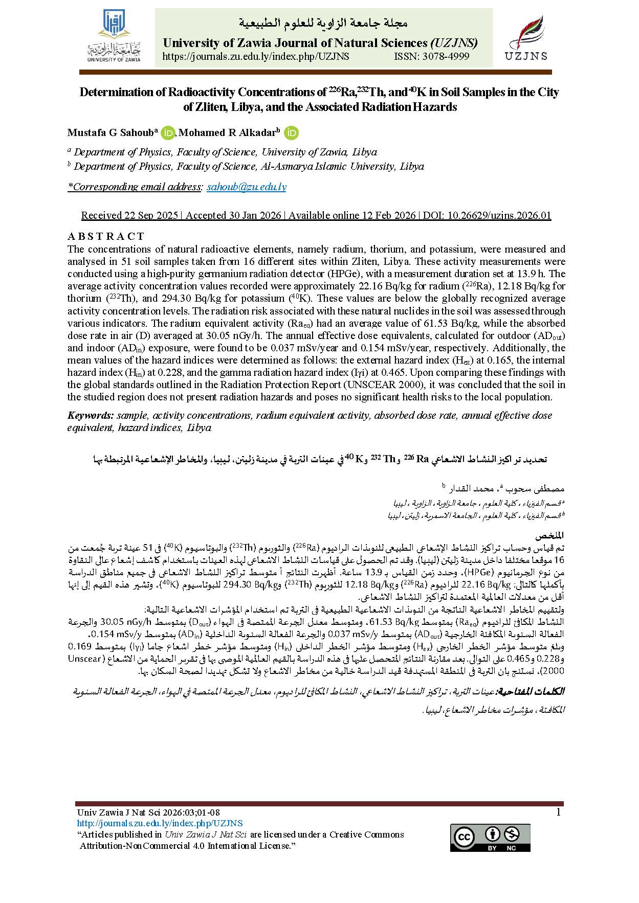 Vol. 3 No. 1 (2026): Univ Zawia J Nat Sci